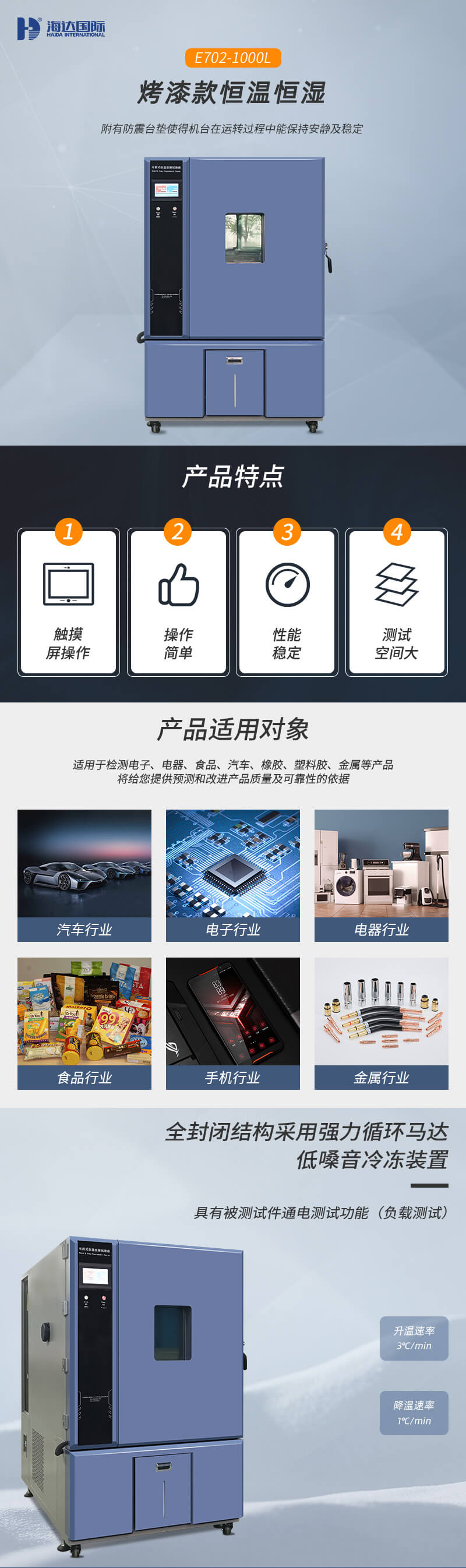 大型恒溫恒濕試驗箱主要用于模擬電子儀器儀表、新型材料、電工、車輛、金屬、電子產(chǎn)品、航空航天材料等在運輸、儲存、使用過程中可能會遇到的嚴酷高溫、低溫或濕熱環(huán)境;或高溫、低溫、濕熱交變環(huán)境下,檢驗材料、配件或儀器設備耐高溫、耐寒、耐濕熱性能及可能造成的損壞壽命縮減等。