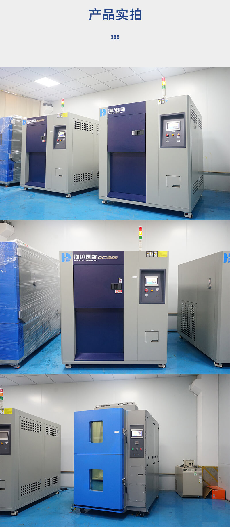 預熱工作室內安裝加熱器、循環風機,內循環風道、溫度監測探頭、風門等;預冷工作室內安裝制冷蒸發器、儲冷片、加熱器、循環風機、內循環風道、溫度監測探頭、風門等;常溫沖擊室安裝有鼓風機、風門、排氣管等;測試工作室安裝有循環空氣導風網孔板、樣品放置托盤、托盤分度架、溫度監測探頭等。預冷、預熱階段常溫沖擊區不工作,高溫區及低溫區氣流進行內循環,快速將預熱區及預冷區空氣溫度達到預設定值;根據需要可選擇高溫或低溫開始沖擊測試。高溫沖擊測試時根據控制器發送指令控制預熱區風門工作,氣流經過測試工作區導風網孔板及測試樣品后返回到預熱區,此時常溫沖擊區不工,低溫區進行內部循環;低溫沖擊測試時根據控制器發送指令控制預冷區風門工作,氣流經過測試工作區導風網孔板及測試樣品后返回到預冷區,此時常溫沖擊區不工,高溫區進行內部循環;常溫沖擊時,根據控制器發送指令控制常溫沖擊區風門及鼓風機工作,鼓風機將設備安裝空間的氣流導入,經過測試工作區導風網孔板及測試樣品同時將測試工作區熱氣流或冷氣流排出室外,此時高溫區與低溫區進行內部循環。根據要求可設置多次循環自動控制;從而達到溫度快速交變和室內溫度均勻分布。 |