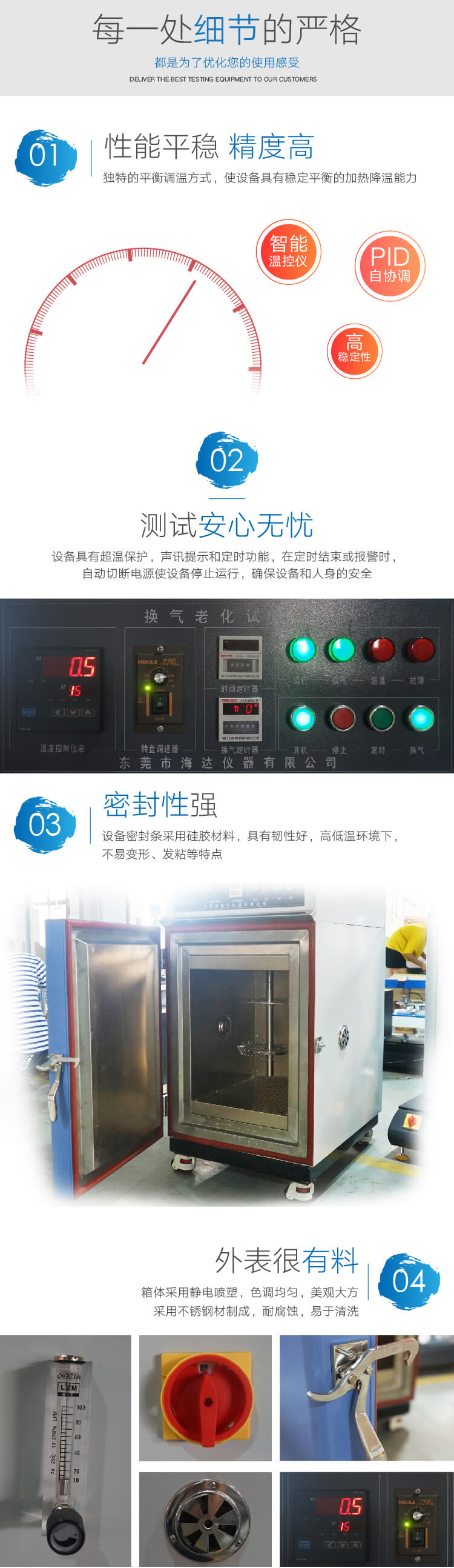 換氣老化試驗機適用于電線類、皮類、塑料類、橡膠類、布類等受熱前和受熱后變化特性。針對電線類在受熱時為維持箱內(nèi)新鮮的空氣,故特制換氣量的調(diào)節(jié)。
