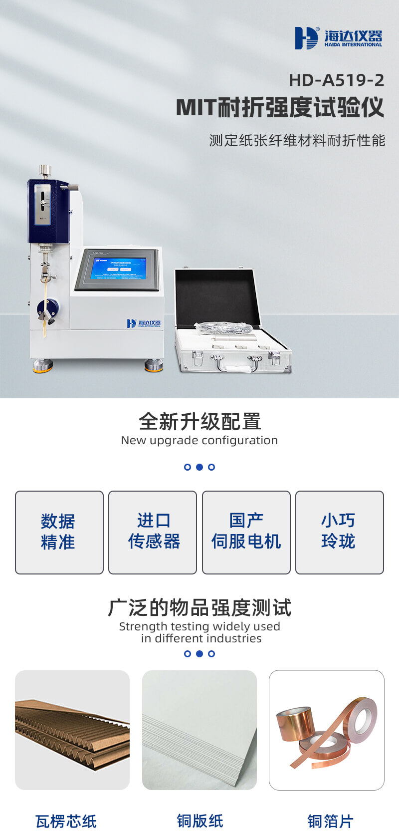 MIT耐折測試儀用于測定紙張纖維材料耐折性能測試,儀器為單折頭MIT式,可根據試驗要求設定試樣縱橫向、張力大小、折疊次數。主要用于紙張、纖維織布、金屬薄片、塑料薄膜以及復合材料的耐折強度測試。